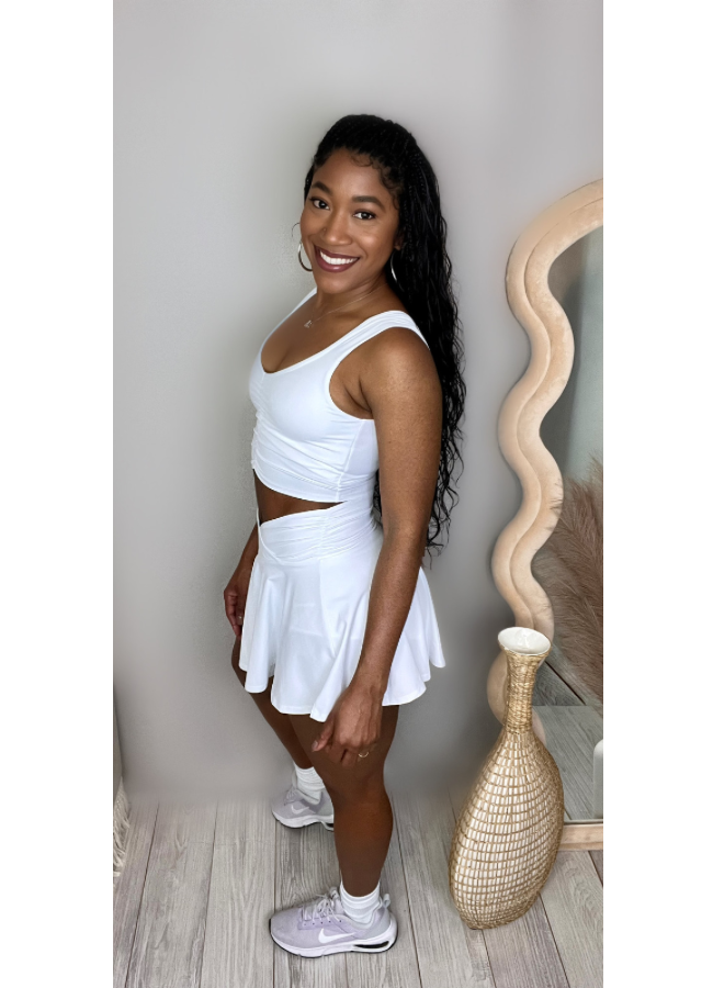 White athletic pleated high waisted skirt with shorts underneath